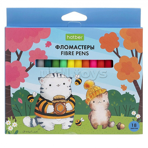 Фломастеры 18 цв. "ЭКО" "Приключения кота Пирожка" в картонной коробке с европодвесом