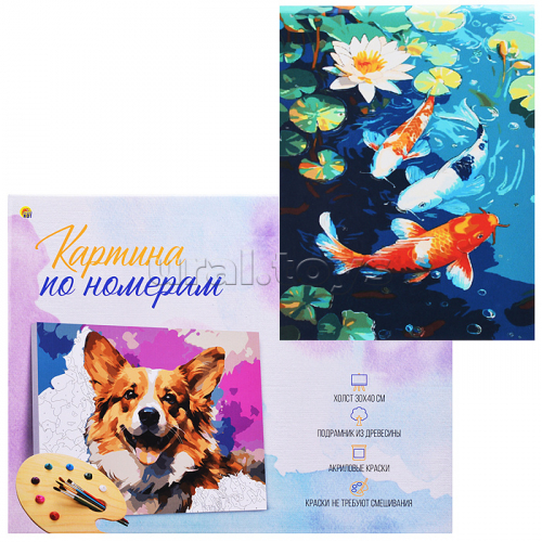 Холст с красками 30x40 по номерам "Красивые рыбки в пруду" в коробке (30цв.)