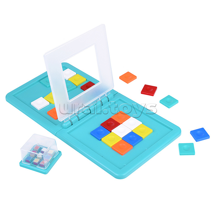 1 шт. Суть игры очень простая: вы перемешиваете 9 специальных кубиков в прозрачном кейсе, а затем воссоздаете их на доске. Тот, кто первый создаст нужную комбинацию, переворачивает крышку на свою сторону.