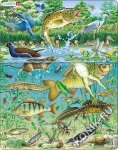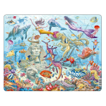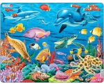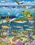 Пазл "Киты" входит в серию "Флора и Фауна". Главными героями пазла являются морские обитатели. Разнообразные киты и другие животные и рыбы появятся на картинке, когда ребенок соберет все детали вместе. Благодаря яркому развивающему набору у детей формируется образное и логическое мышление, развивается внимание, память. _x000D_ _x000D_ Детали пазла выполнены из трехслойного картона, не деформируются и удобны для маленьких детских ручек. Готовую картинку можно сохранить и разместить в качестве картины на стене детской комнаты. _x000D_ _x000D_ На пазле представлены обитатели Тихого океана: летучая рыба, странствующий альбатрос, бурая олуша (2 ныряющие птицы), пеликан, птица малый фрегат, чернобровый альбатрос, синий кит, рыба-белка/рыба-солдат (и посередине слева стая красных рыб), португальский кораблик (медуза), желтопёрый тунец (наверху вдали), кожистая черепаха, морской дьявол, парусник, полосатый сладкогуб, кашалот, гигантский кальмар, крылатка-зебра (или рыба-лев), голубая акула, рыба голубой хирург, осьминог, длинноносая рыба-бабочка, трёхполосый луциан (полоски красные и белые), пятнистый иглобрюх, 2 жёлтые рыбы-бабочки (слева), большая белая акула, скаровая рыба (2 рыбы), различные кораллы, красная и голубая морские звёзды, коралл-мозговик (внизу справа). _x000D_ _x000D_ В наборе 66 элементов пазла. Размер собранного поля - 36,5 х 28,5 см.