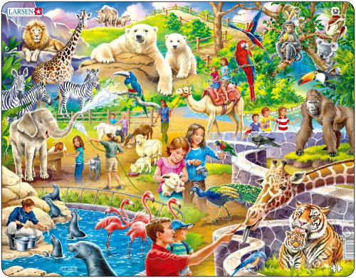 Пазл Зоопарк норвежской компании Larsen позволит малышу в интересной игровой форме собрать красочную картинку с животными зоопарка. _x000D_ _x000D_ Пазлы Ларсен - это яркие картины, которые помогают ребенку узнавать окружающий мир и гармонично развиваться. _x000D_ _x000D_ Все дети любят собирать пазлы. Многообразие форм и различные размеры отдельных элементов способствуют развитию мелкой моторики у малышей. Сделанные из высококачественного трехслойного картона, они не деформируются и легко берутся в руки. Все пазлы снабжены специальной подложкой, благодаря чему их удобно собирать. _x000D_ _x000D_ В наборе: 48 элементов пазла. Размер собранного поля - 36,5 х 28,5 см
