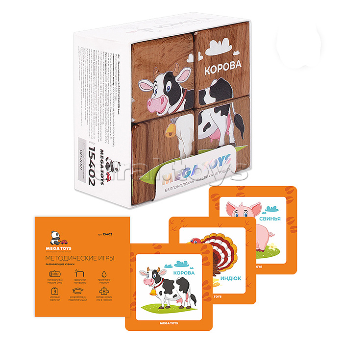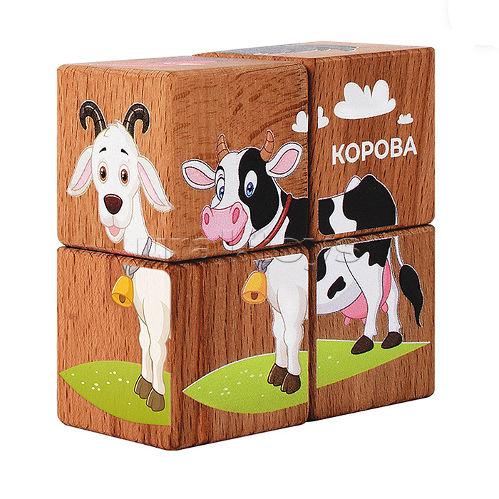 Набор кубиков обучающий "Лесные жители" (4кубика, 3 двусторонние карточки, развивающее методическое пособие)