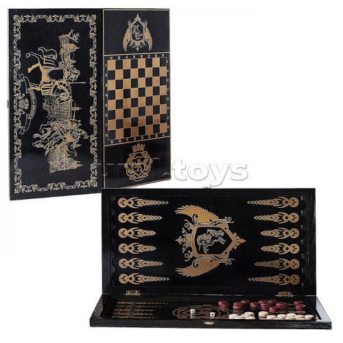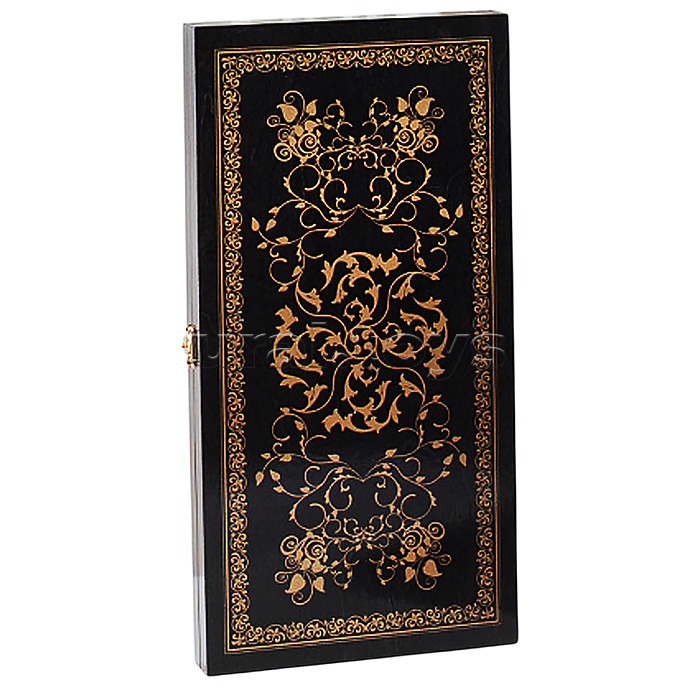 Нарды малые черные, рисунок золото "Вьюн" (400*200*40)