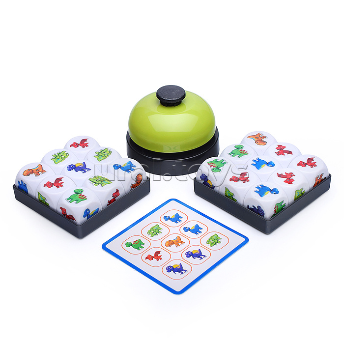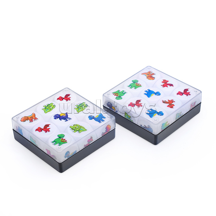 - 18 кубиков с изображениями динозавров на каждой стороне.