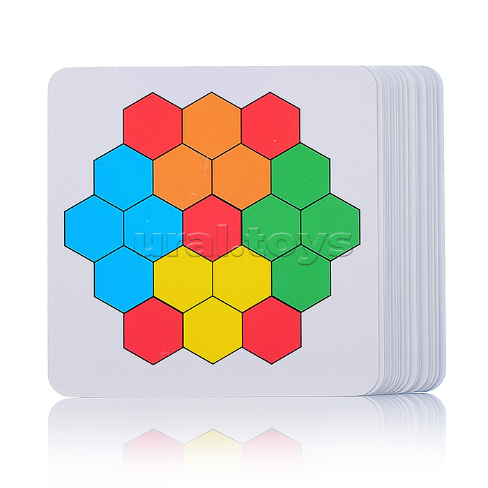 Можно раскладывать элементы по заданиям из карточек самостоятельно, либо делать это вдвоем, пытаясь собрать комбинацию раньше соперника.