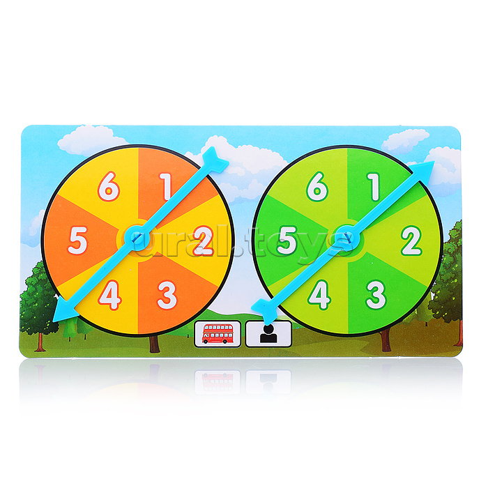 Вращение рулетки и значки на клетках определяют количество пассажиров, которые заходят и выходят, у кого окажется больше пассажиров на финише, тот и побеждает.