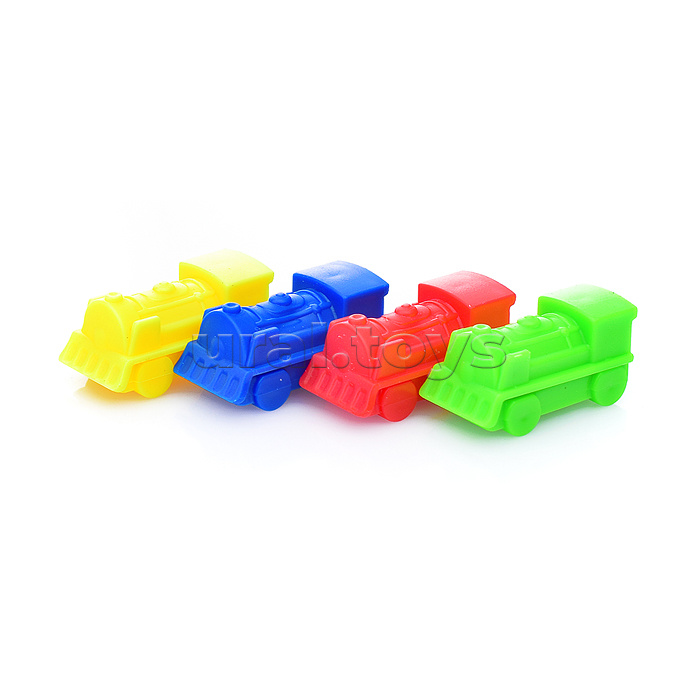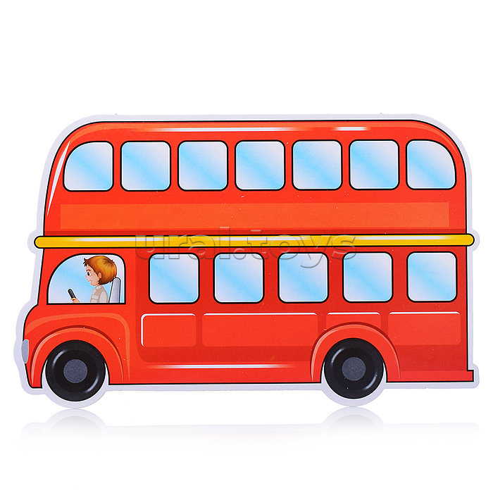 В комплекте: картонное игровое поле из 4-х частей, 64 карточки пассажиров, 4 игровые фигурки и 4 автобуса для размещения пассажиров, а также рулетка.