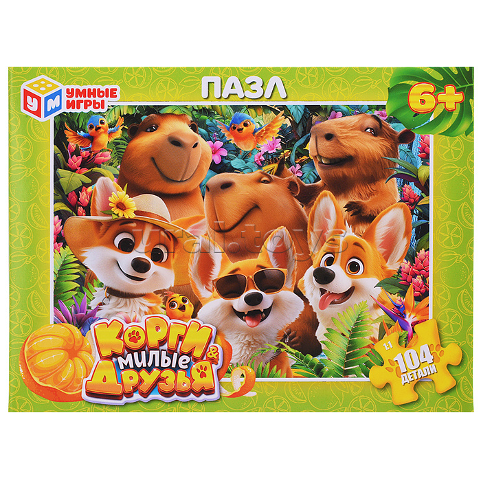 Пазлы 104 "Корги и Милые друзья" 190х141х35 мм.