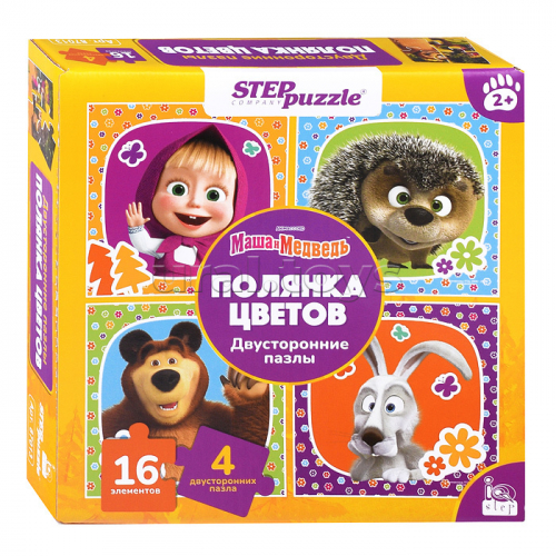 Пазлы 16 "Маша и Медведь. Полянка цветов. Двусторонние пазлы" (IQ step) (Анимаккорд)