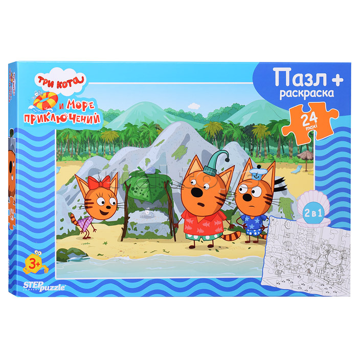 Пазлы maxi 24 + раскраска "Три кота и море приключений" (АО "СТС")