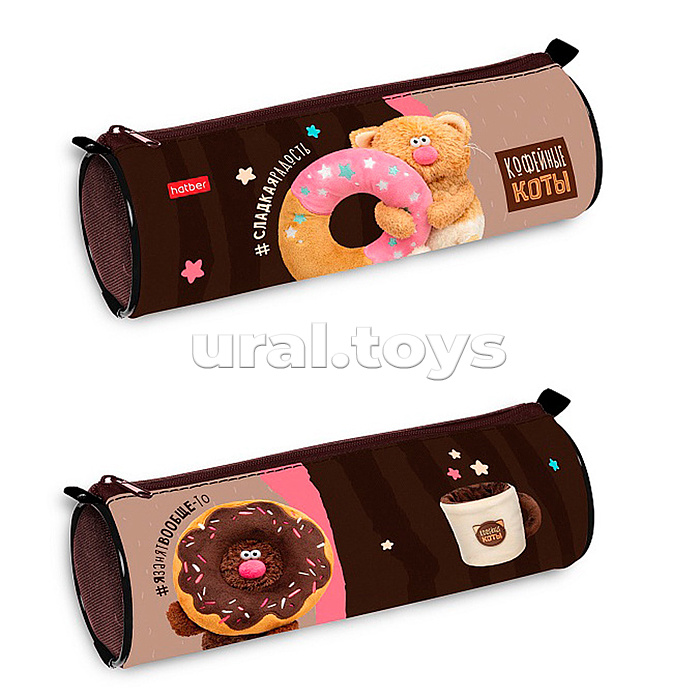 Пенал-тубус 210х70мм на молнии "Кофейные коты"