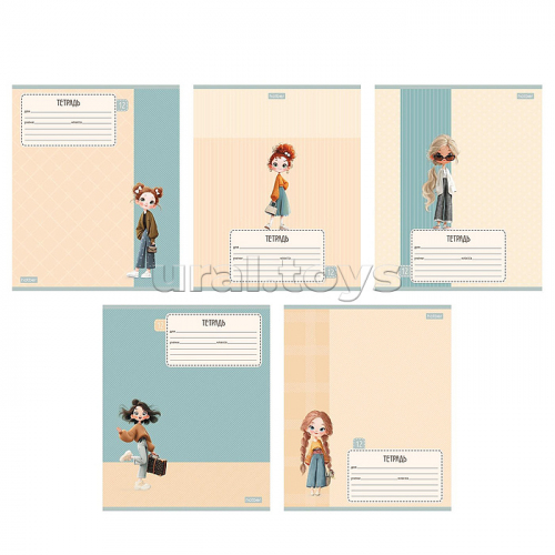 Тетрадь 12л. клетка "Лилу" А5ф 60-65г/кв.м на скобе обл. мел.картон 5 диз.в блоке скругл.углы
