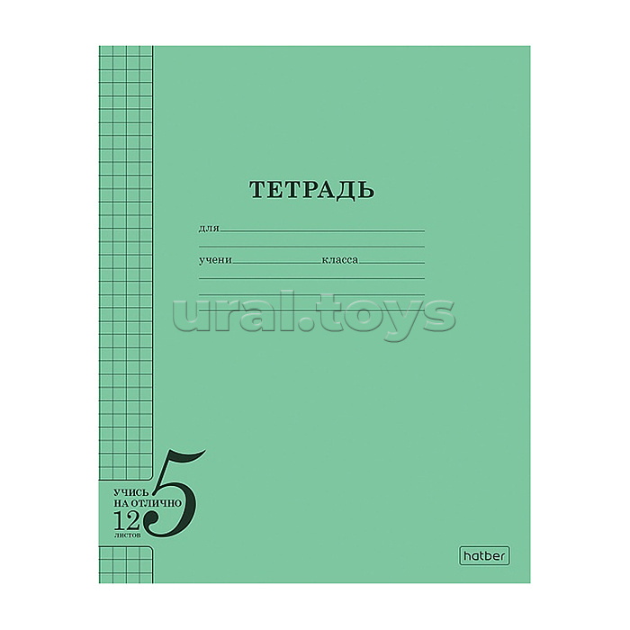 Тетрадь 12л. клетка "Учись на отлично" А5ф 60-65гр на скобе обл. офсет.бумага 120г/кв.м зеленая
