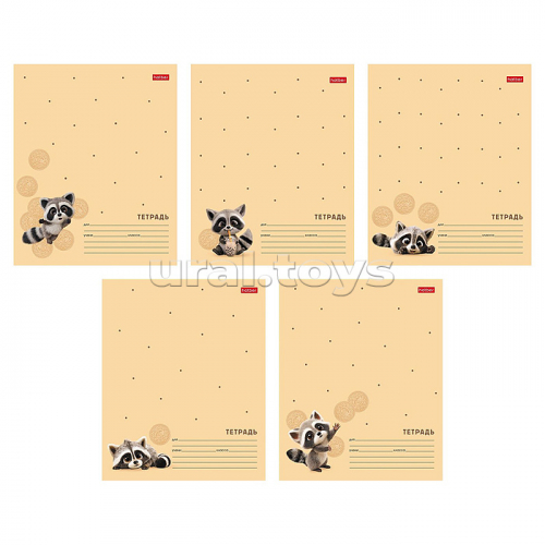 Тетрадь 12л. клетка "Вот енот" А5ф 60-65г/кв.м на скобе Обл. мел.картон 5 диз.в блоке скругл.углы