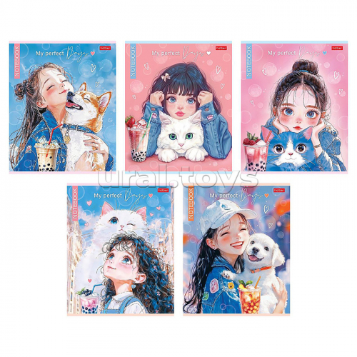 Тетрадь 48л клетка "Bubble tea" на скобе ламинац. Soft-touch запечатанный оборот