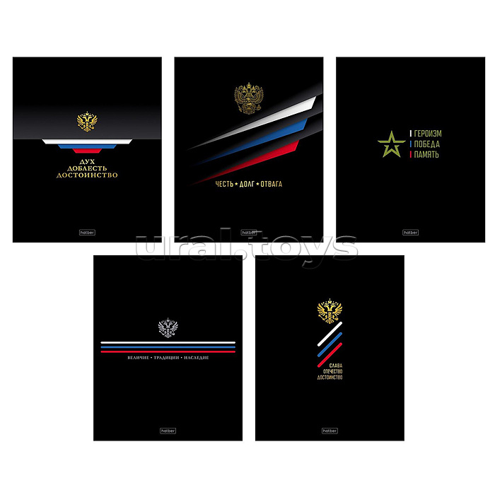 Тетрадь 48л. клетка "Россия" А5ф 60-65г/кв.м на скобе обл. мел.картон глянц. ламин. 5 диз.в блоке
