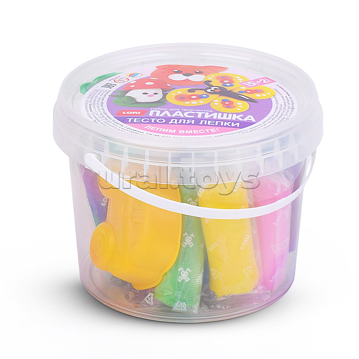 Пластишка. Тесто для лепки 15 цв по 24 гр с формочками (ведерко с ручкой)