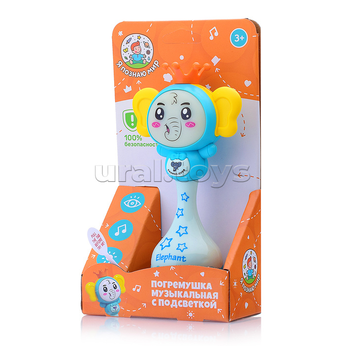 Погремушка музыкальная с подсветкой "Слоненок" в коробке