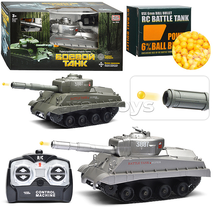 Боевой танк р/у, на аккумуляторных батарейках, з/у, с пульками, в коробке