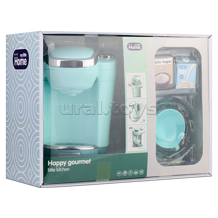 Бытовая техника "Кофемашина" с аксессуарами, бирюзовый , (свет, звук) в коробке