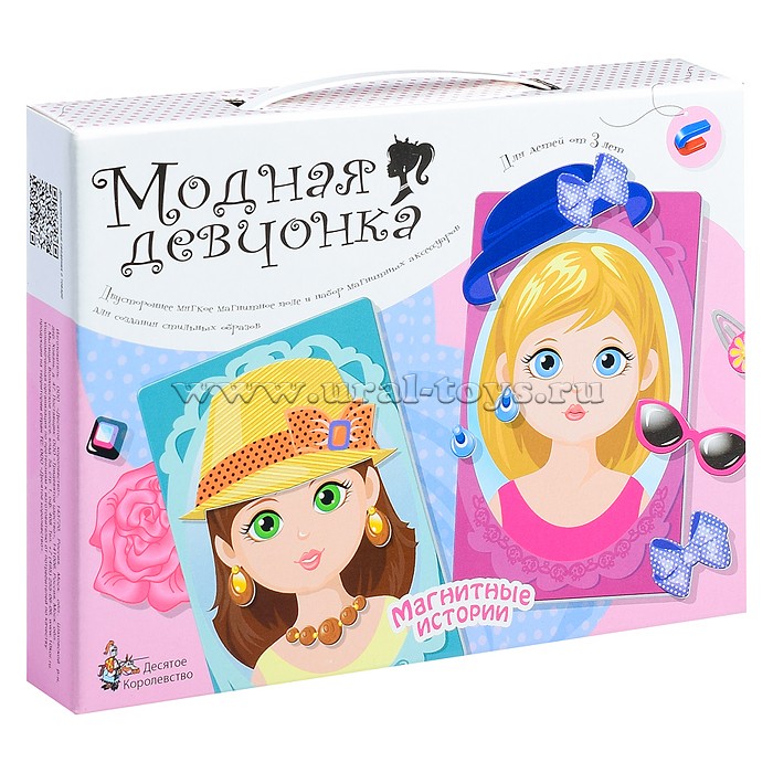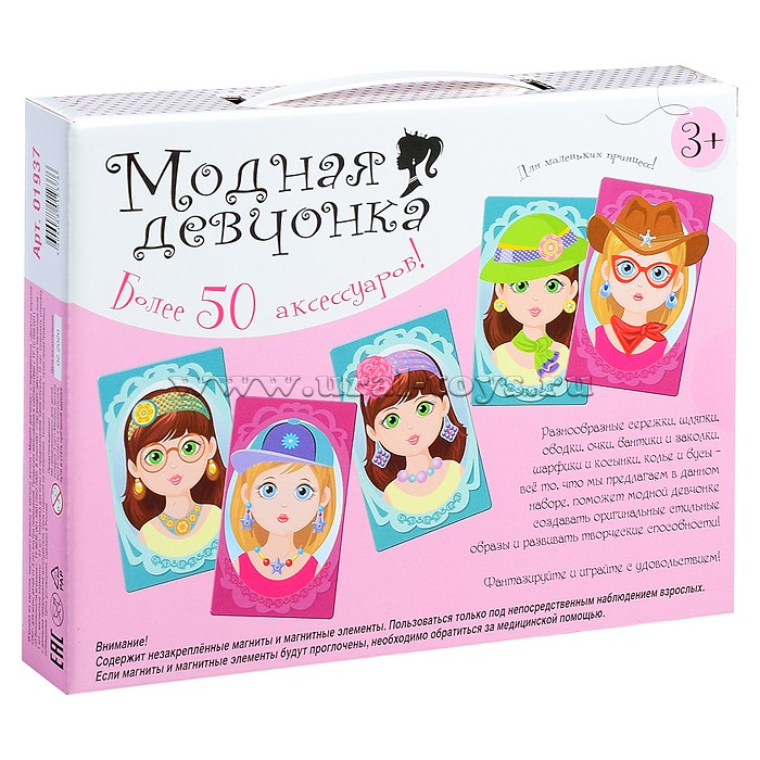 1 шт. Магнитная игра «Модная девчонка» предлагает создать оригинальные стильные образы модных девочек. Разнообразные сережки, шляпки, ободки, очки, бантики и заколки, шарфики и косынки, колье и бусы Вы найдете в наборе.