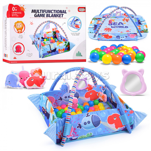 Детский развивающий коврик "Морские жители" с бортиками и шариками, в коробке