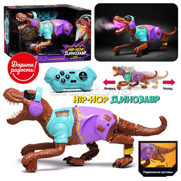 Динозавр "Хип хоп" р/у (ходит, распыляет пар) в коробке