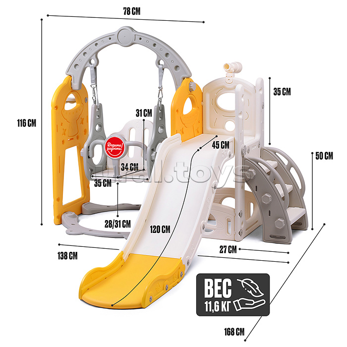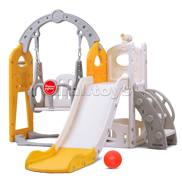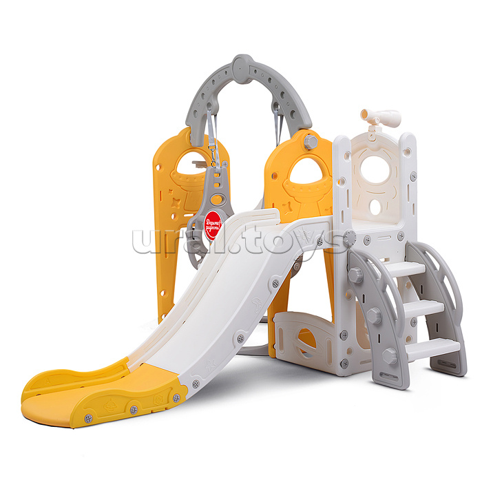 Комплект детский "Космический стиль" (горка и качель) цвет желтый.