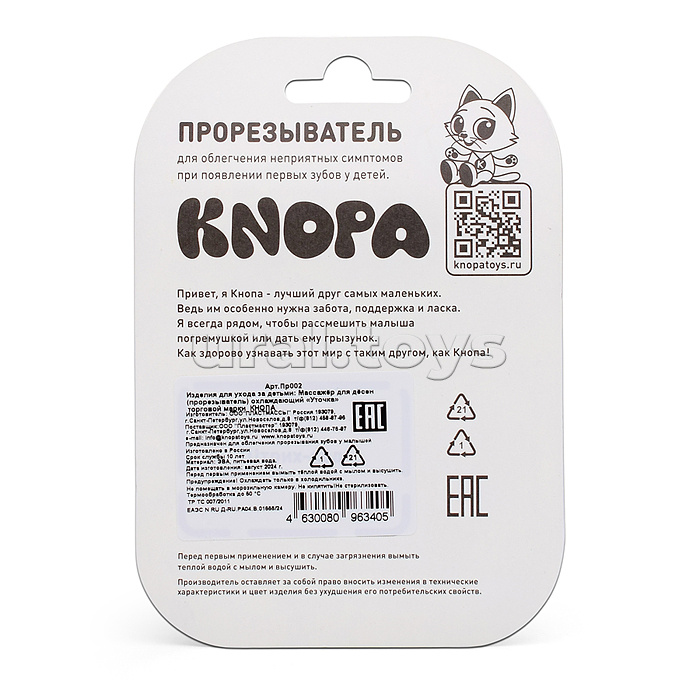 Массажер для десен охлаждающий (прорезыватель) "Уточка"
