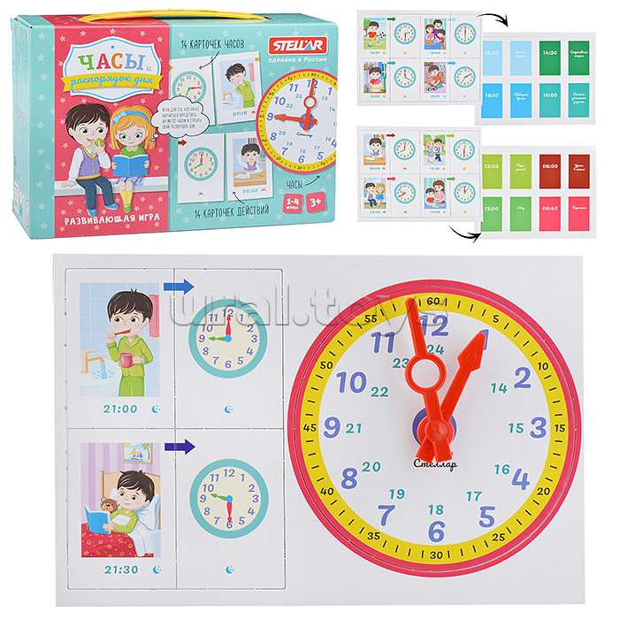 1 шт. • Игра «Часы и распорядок дня» незаменимый помощник для родителей желающих познакомить своих детей с понятиями «время» и «распорядок дня»!