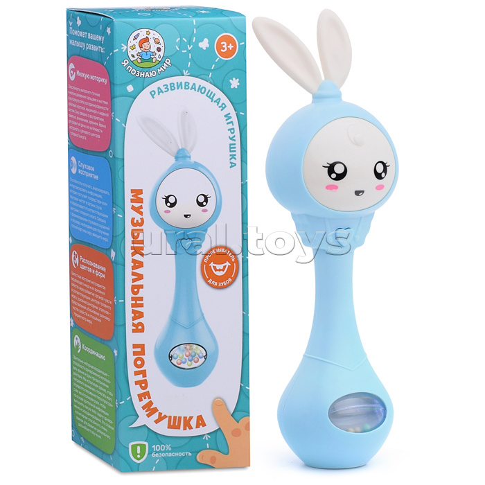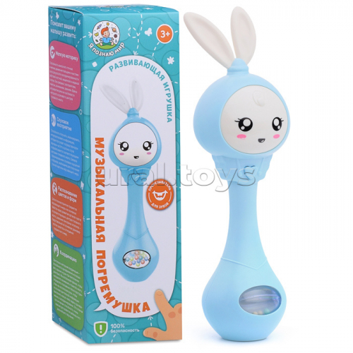 Погремушка-прорезыватель "Зайка" (цвет голубой) в коробке