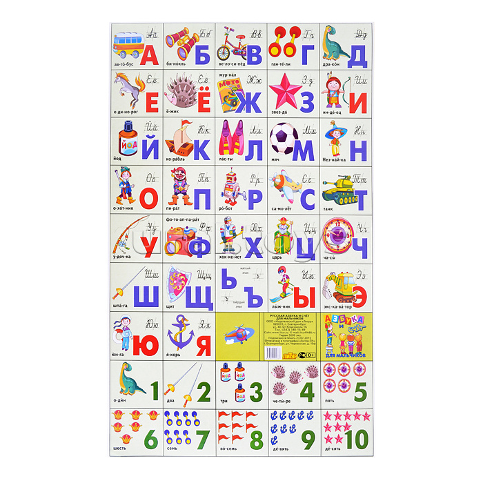 Плакат. Азбука русская разрез + счет для мальчиков (мал.формат) 220*330