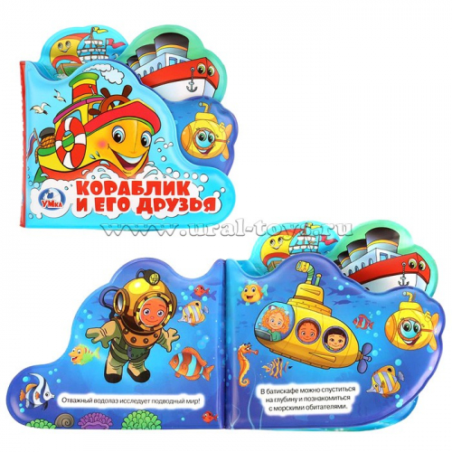 Книга-пищалка для ванны с закладками. Кораблик и его друзья. Формат: 14х14см 8стр