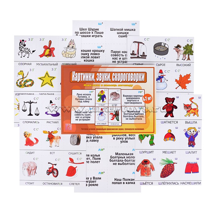 Настольная игра "Картинки, звуки, скороговорки"