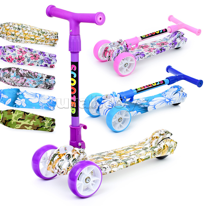 Самокат U037275Y 3-х кол., цвет микс, светящиеся колёса, PU, ABEC 7, в пакете