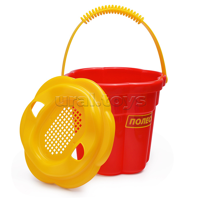 Набор №307: ведро-цветок среднее №3, ситечко-цветок среднее №3, лопатка №5, грабельки №5, формочки (краб №2 + морской конёк + ракушка №2 + черепаха)