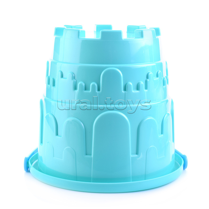 • В наборе большое ведро-замок, лопатка, грабельки, формочка-замок «Башня», формочка-замок «Стена с двумя башнями», формочка-замок «Мост».