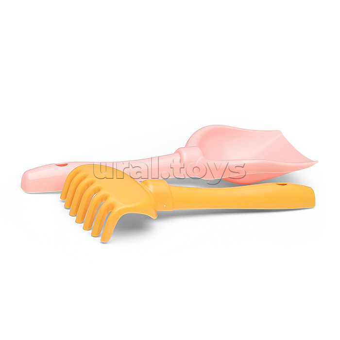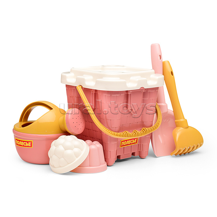 Набор №693: ведро-замок большое №2, ситечко-крепость большое, лопатка №5, грабельки №5, 2 формочки, лейка малая №4 (розовый)