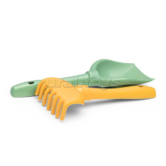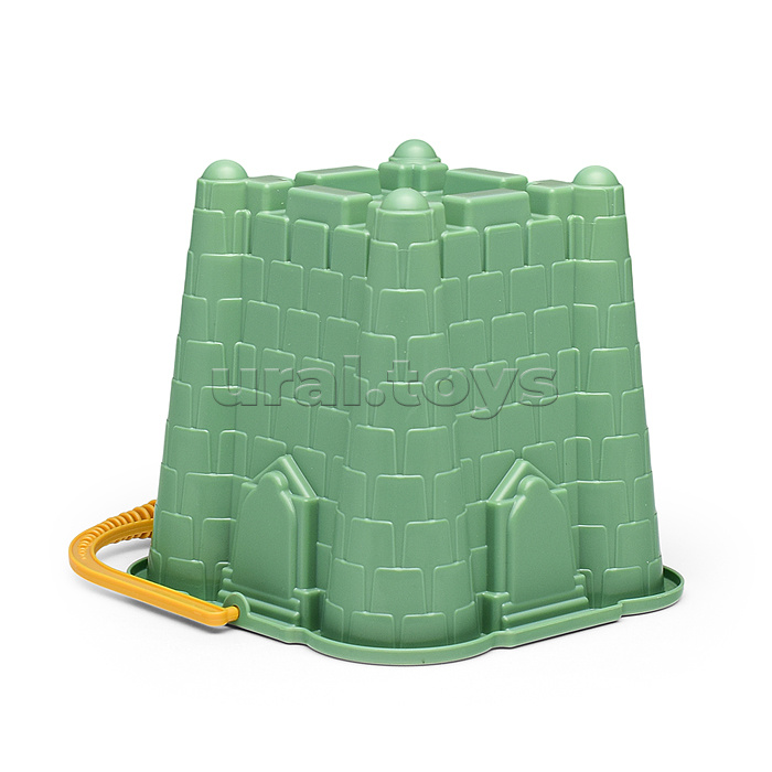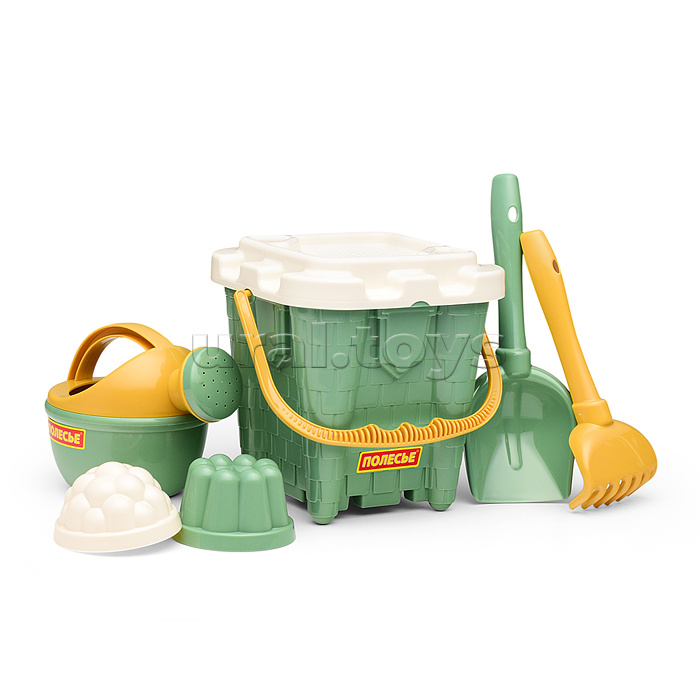 Набор №694: ведро-замок большое №2, ситечко-крепость большое, лопатка №5, грабельки №5, 2 формочки, лейка малая №4 (бледно-зелёный)