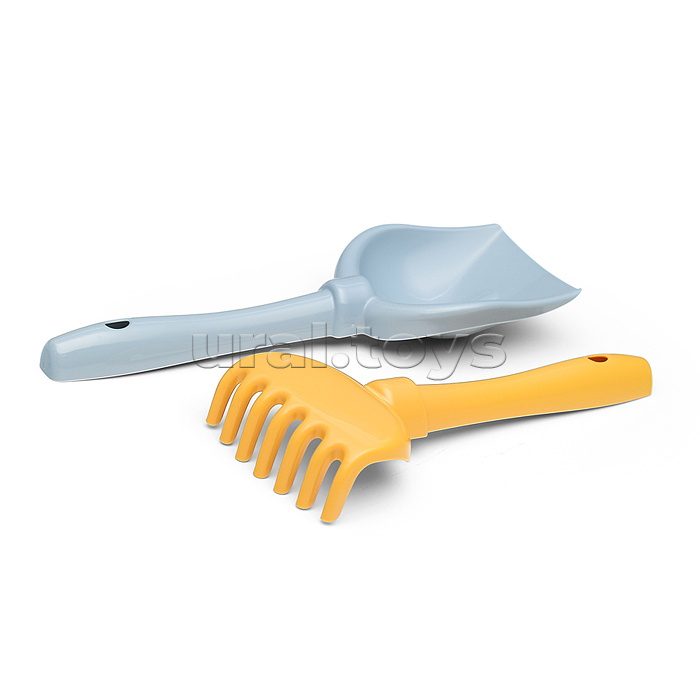 Набор №695: ведро-замок большое №2, ситечко-крепость большое, лопатка №5, грабельки №5, 2 формочки, лейка малая №4 (серо-голубой)