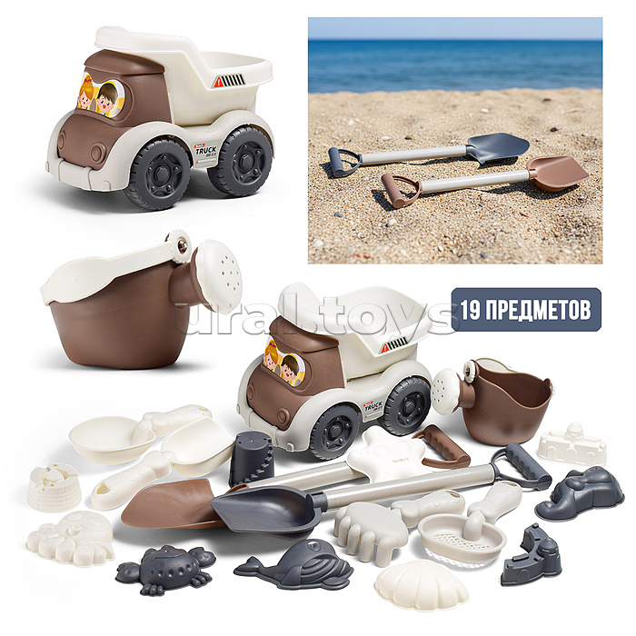 Набор для игры в песке "Морские обитатели" с мащинкой, в сетке (19 предметов)