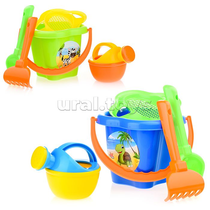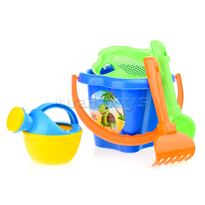 Набор №237: ведро-цветок среднее, ситечко-цветок, совок №2, грабельки №2, лейка малая №3