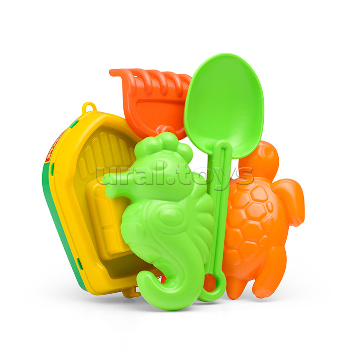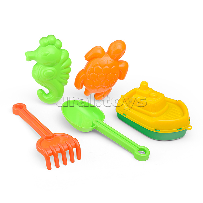 Набор №370: кораблик "Буксир", совок №7, грабельки №7, формочки (морской конёк + черепаха)