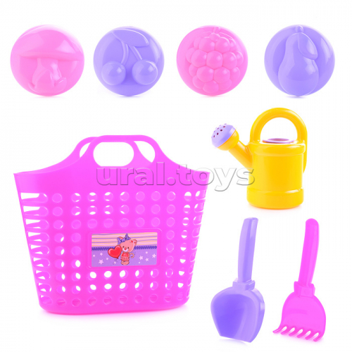 Песочный набор "Принцесса песочницы" ( 4 формочки, совок, грабли, леечка)