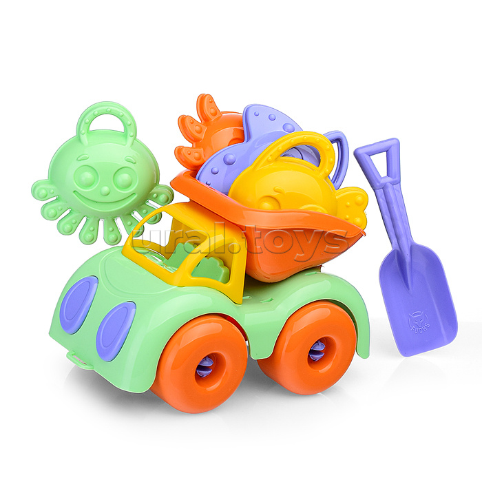 1 шт. Песочный набор: • В наборе: - машина (20х8 см). - 4 формочки. - совок. • Материал: пластик. • Соответствует требованиям безопасности продукции. • Для детей от 3-х лет.