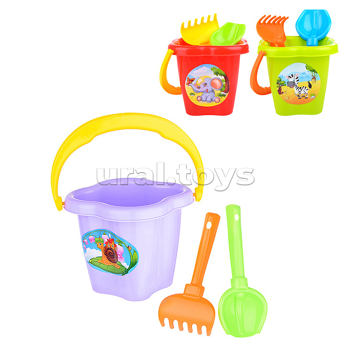 Набор №24: ведро-цветок среднее, совок №2, грабельки №2