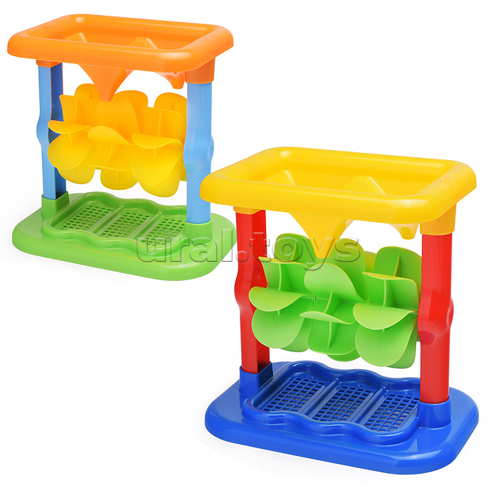 • При насыпании песка, внутри мельницы вращаются колёса.