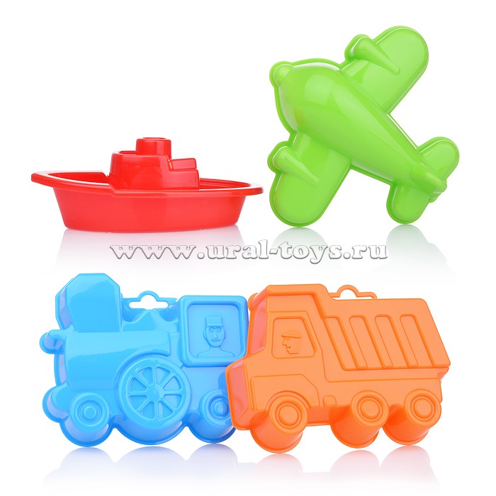 Набор №258: формочки (самосвал + паровоз + самолёт), кораблик "Юнга"