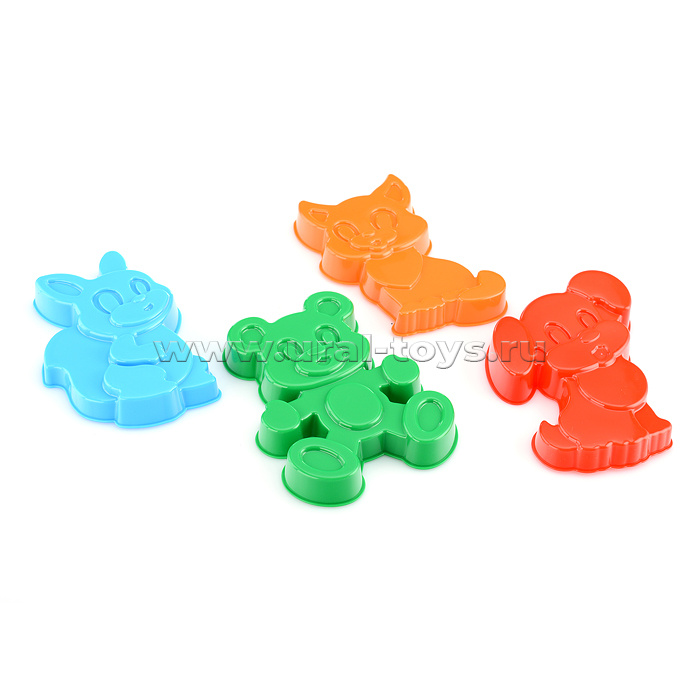 Длина формочек-животных (белочка + пёсик + котёнок + медведь): 16 см.