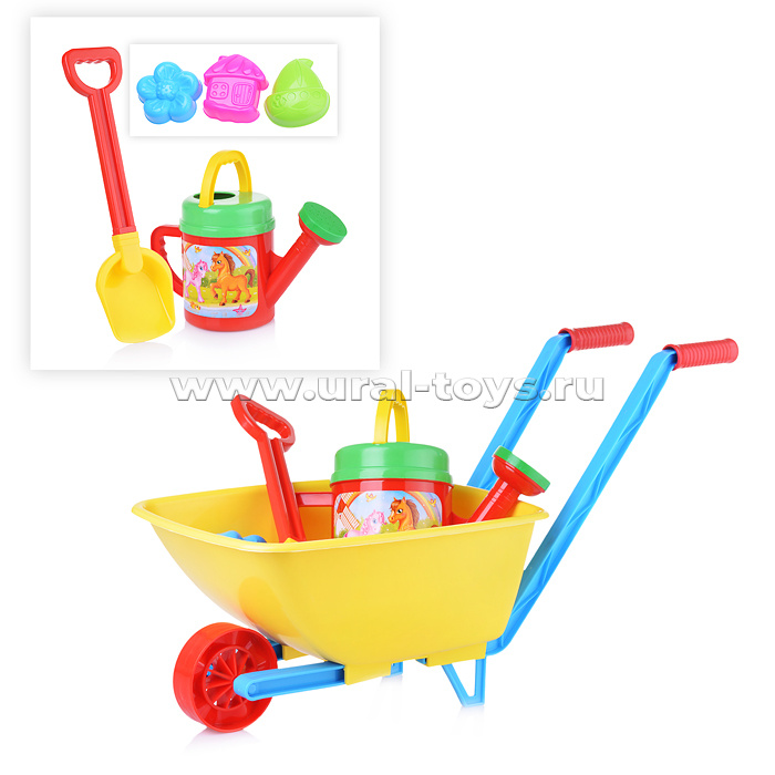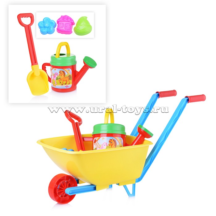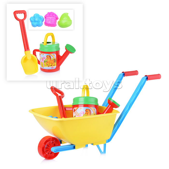 Песочный набор № 130 (тачка детская, лопата сред., лейка 1 л, 3 формы)